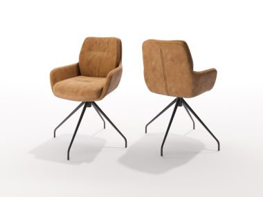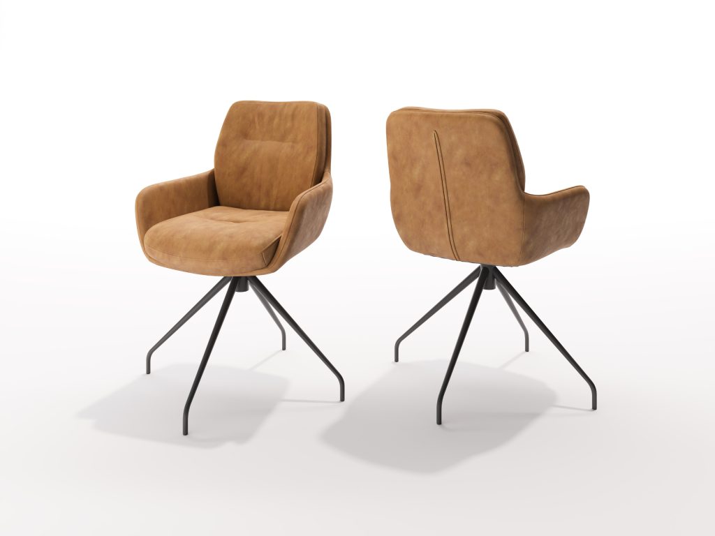 Polsterstuhl: Das Untergestell Metall schwarz gibt es wahlweise in Fix, mit Dreh und -oder Rückholfunktion, oder auch mit Holzbeinen, wählbar in Stoff oder Leder erhältlich.