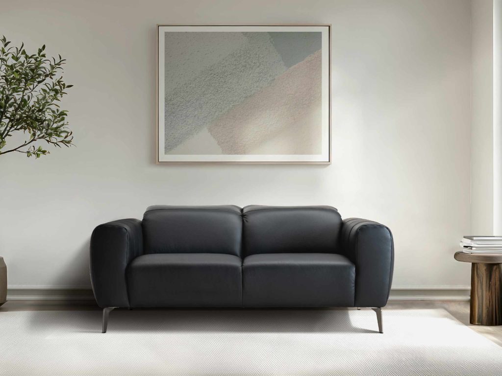 In echt Leder schwarz mit einem 4-Fuss Gestell in Metall schwarz pulverbeschichtet. Artikel ab Lager sofort verfügbar.