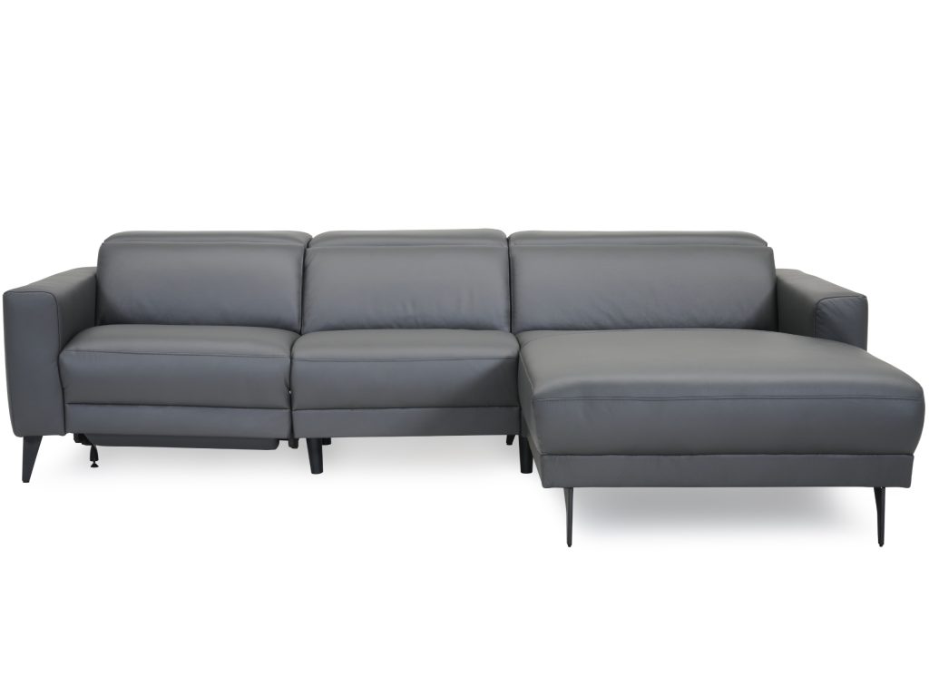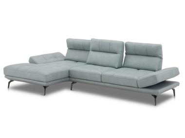 In Leder Arctic Blue, Füsse in schwarz inkl. Sitztiefenverstellung. Longchair mit Armteil links klappbar und Sofa 3-plätzig mit Armteil rechts klappbar. Schenkelmass ca. 219 x 293 cm. Artikel ab Lager sofort verfügbar.