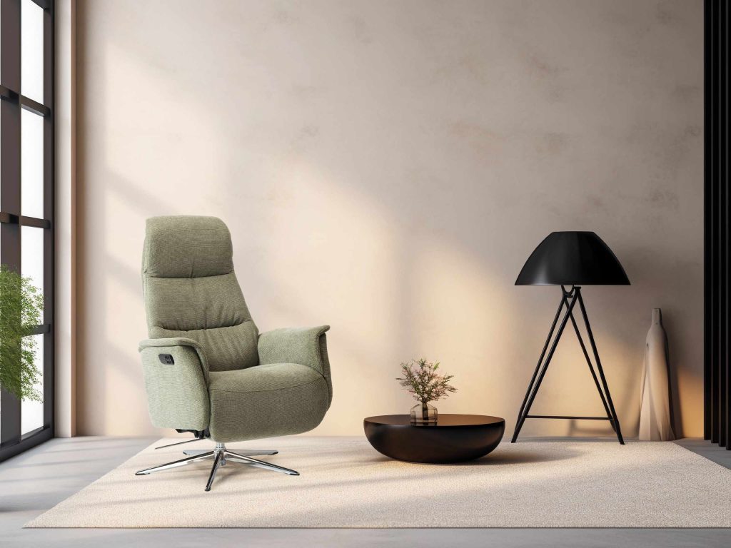 Stylischer Relax-Sessel erhältlich in flauschigen Stoffen oder auch in anschmiegsamen Leder. Wählen Sie aus 5 verschiedenen Untergestellen in Metall oder auch Holz. Wahlweise zusätzlich mit Nackenkissen und Hocker erhältlich.