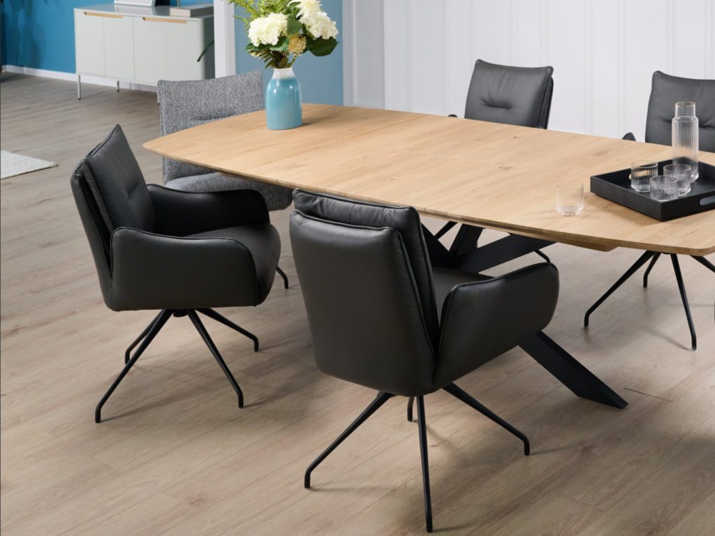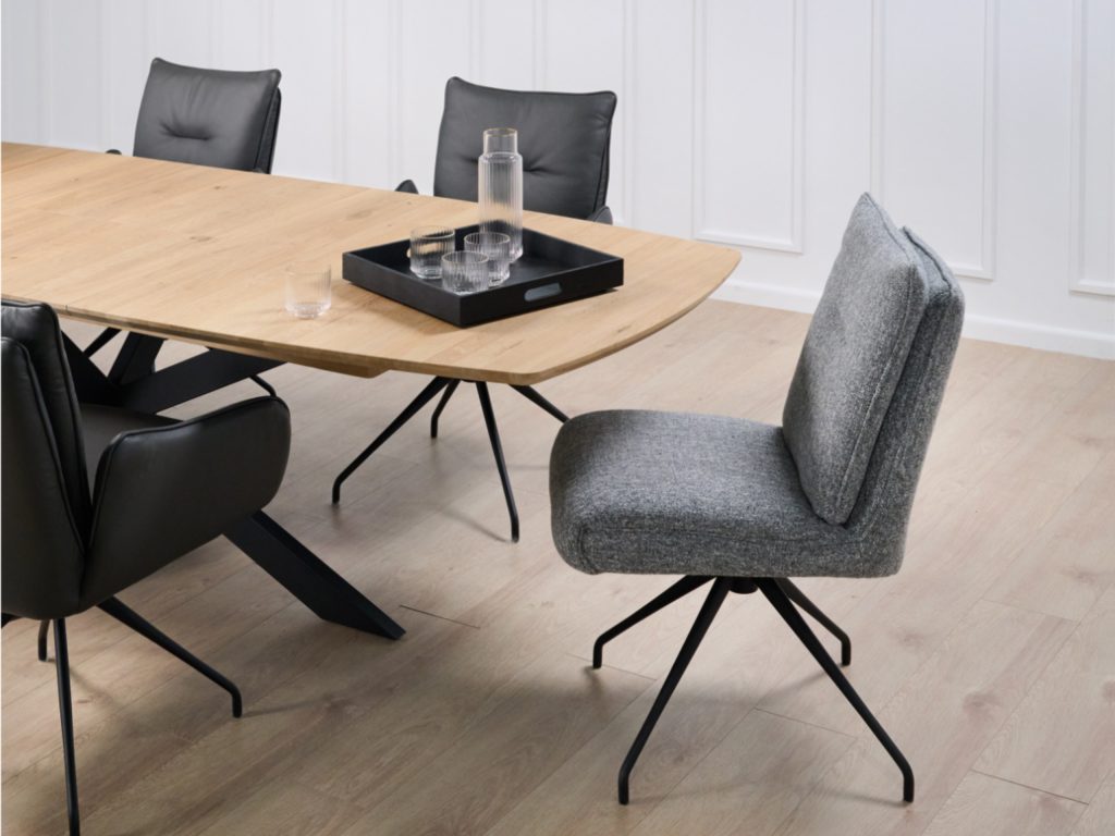 Wählen Sie aus einer Vielzahl von Stoff und Lederfarben Ihren ganz persönlichen und äusserst bequemen Polsterstuhl mit oder ohne Armlehnen. Zudem können Sie aus 6 Fussvarianten in unterschiedlichen Farben wählen die je nach Untergestell 360° drehbar sind.