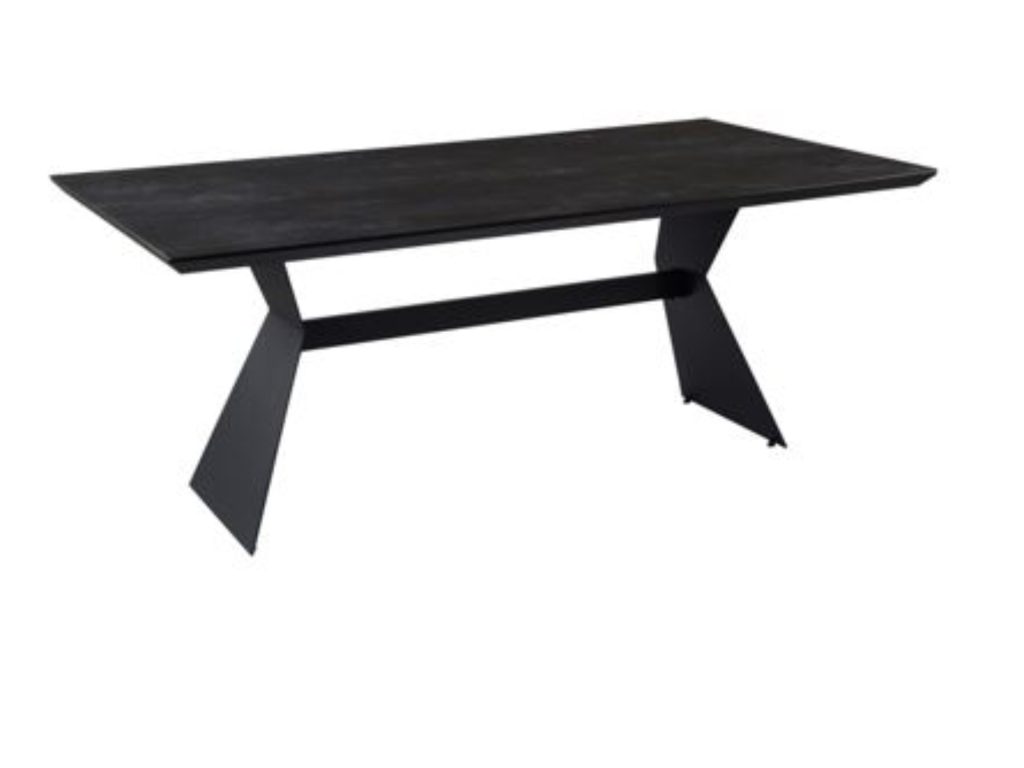 Die Platte in MDF (Mitteldichte Holzfaserplatte) schwarz mit Keramik ist in der Grösse 200/100 cm erhältlich. Das aussergewöhnliche Gestell ist in matt schwarz pulverbeschichtet. Artikel ab Lager sofort verfügbar.