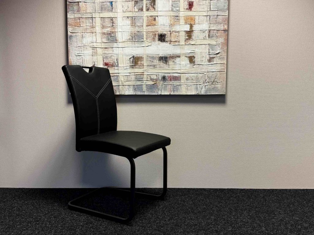 Bequemer Freischwinger Stuhl mit Gestell in Edelstahl und Bezug in Lederlook schwarz. Artikel ab Lager sofort verfügbar.