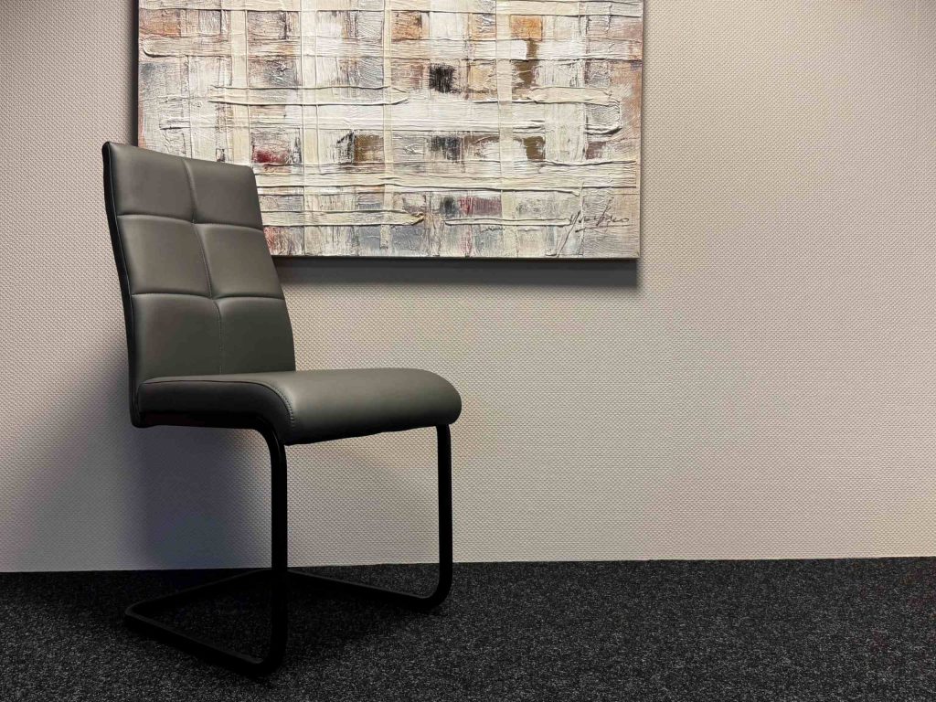Bequemer Freischwinger Stuhl mit Gestell in schwarz pulverbeschichtet und Bezug in PU (Polyurethan) anthrazit. Artikel ab Lager sofort verfügbar.