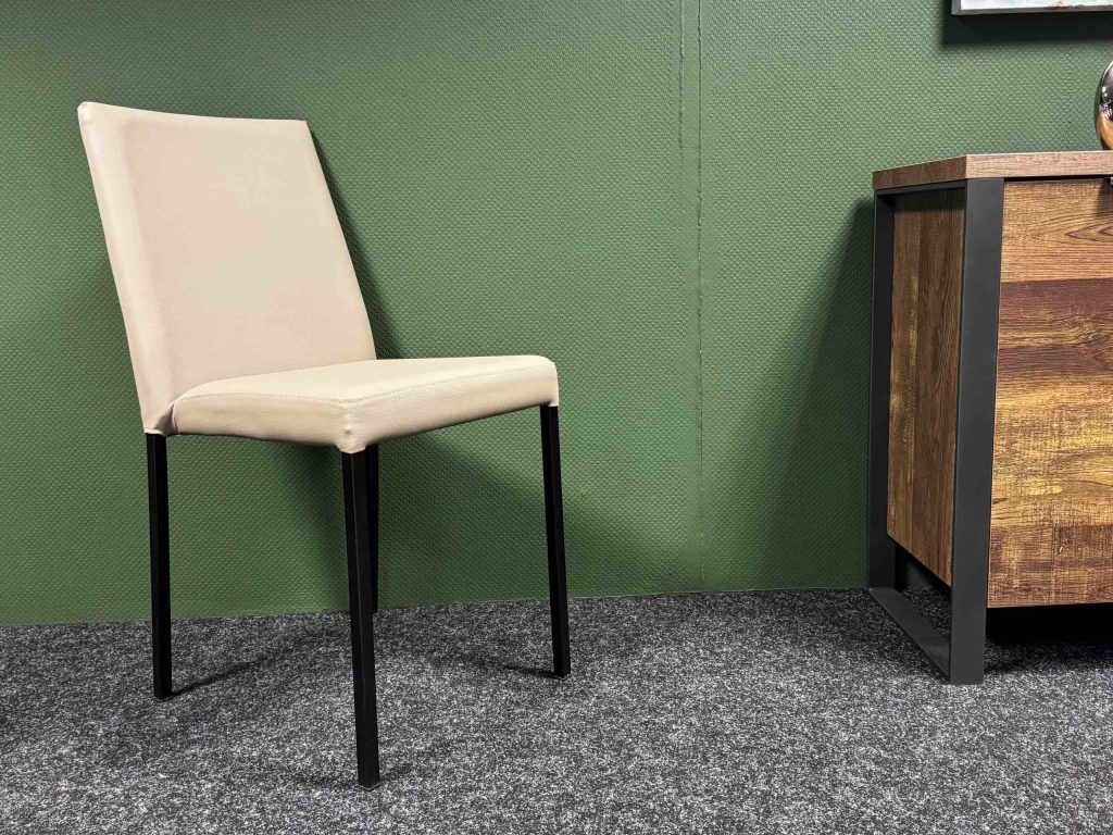 Wählen Sie aus den Farben Lederlook anthrazit oder sand. 4-Fuss Gestell in schwarz. Der Stuhl kann platzsparend gestapelt werden. Alle Farben ab Lager sofort verfügbar.