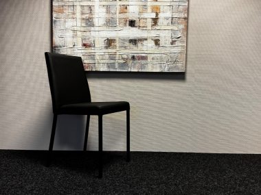 In Microfaser grau erhältlich, Fuss Metall schwarz drehbar mit Rückholfunktion.
