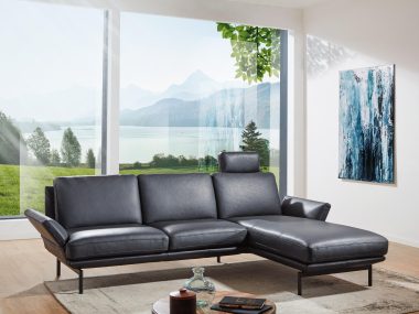 Modernität trifft Funktion. Auf den ersten Blick ist diese Rücken-Funktion nicht erkennbar. Der hochklappbare Rücken lässt dieses Modell zu einem bequemen Hochlehner werden. Wählen Sie aus 3 verschiedenen Armlehnen, 3 unterschiedlichen Sitzpolsterungen, 10 verschiedenen Fussvarianten, wahlweise auch mit einer Relax-Funktion erhältlich. Einzelne Sofas oder auch als Eck-Sofa bestellbar.