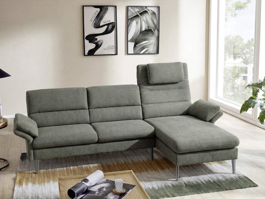 Chillige moderne Sofaecke mit viel Sitzfläche und doch auch für kleine Räume geeignet. Jedes Element ist mit einer Kopfteilverstellung ausgestattet. Es stehen eine Vielzahl an Stoffe und Leder in vielen Farben zur Verfügung. Verschiedene Grössen planbar. Optional gibt es auch einen Sitzvorzug so das eine grosse Liegefläche entsteht.