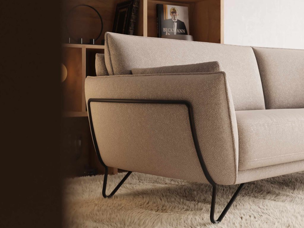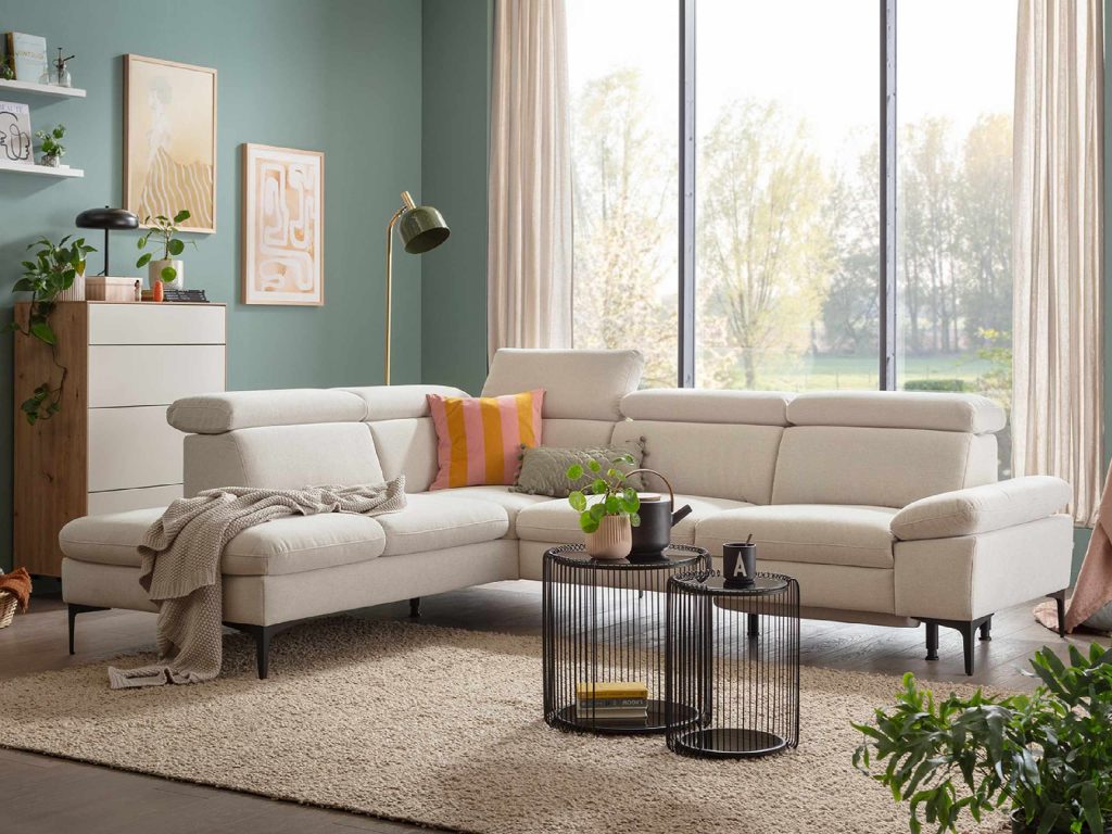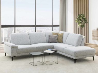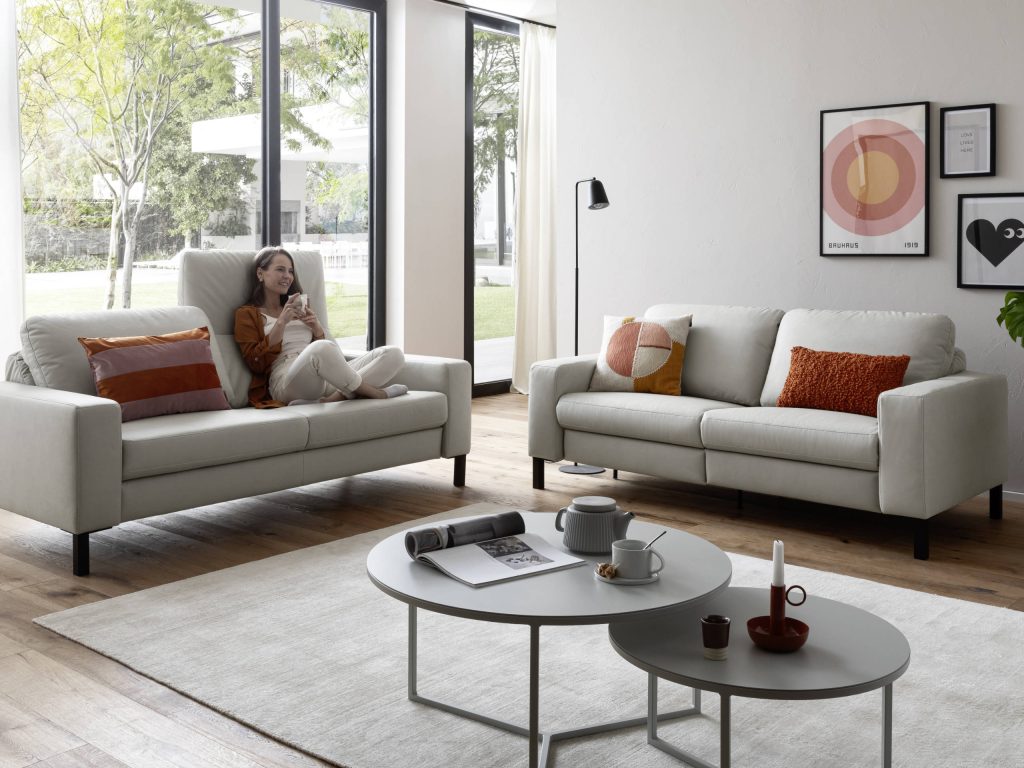 Die bodenfreie Sofaecke gibt dem Raum viel Ambiente. Die schlichten Kufen gibt es in schwarz oder Edelstahloptik. Die Armteile sind stufenlos verstellbar. Wählen Sie aus 2 Sitzhärten und 2 Sitztiefen Ihr persönlichen Sitzkomfort. Erhältlich als Sofa von 164 bis 224 cm oder als Eckgarnitur mit Long Chair oder Abschlussteil.