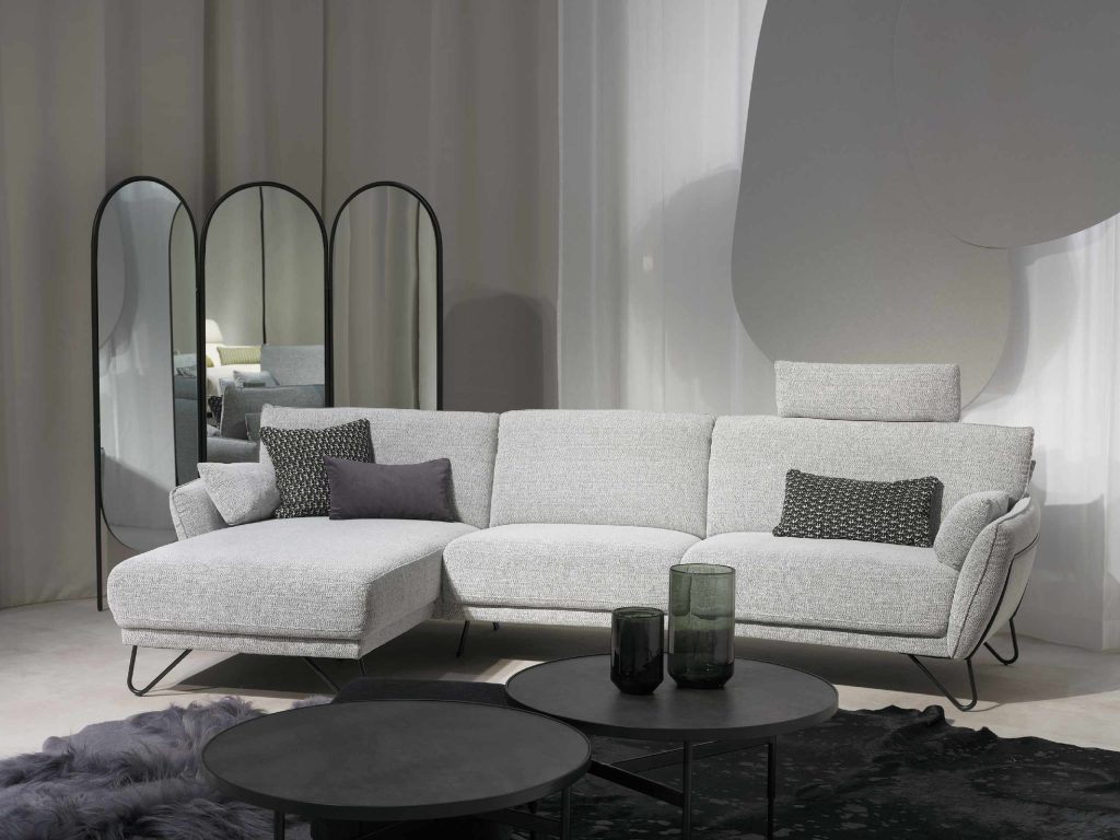 Weit mehr als nur eine Sofalandschaft. Die Sitztiefenverstellung passt sich Ihren Bedürfnissen an und die optionale Kopf- Seitenverstellbarkeit bieten zusätzlichen Komfort. Das Sofa passt sich Ihrem Sitzverhalten an. Wählen Sie aus über 100 Stoff und Lederfarben. Zusätzlich können Sie zwischen zwei verschiedene Füssen in jeweils schwarz oder silber wählen.
