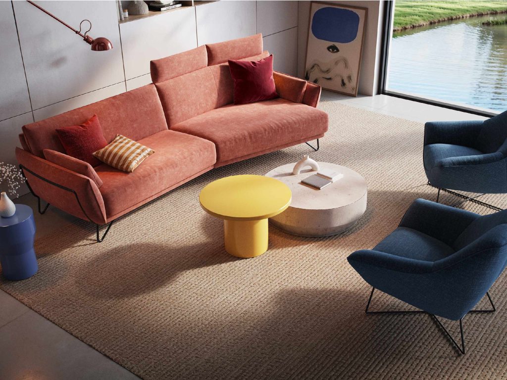 Die organische Form verwandelt Ihr Wohnzimmer in eine Wohlfühloase. Ein umfangreicher Typenplan erlaubt eine passgenaue Planung für Ihren Raum und eine Vielzahl an Stoffen und Farben lässt der Kreativität alle Möglichkeiten offen. Passende Deko Kissen oder Sessel runden das Programm ab.
